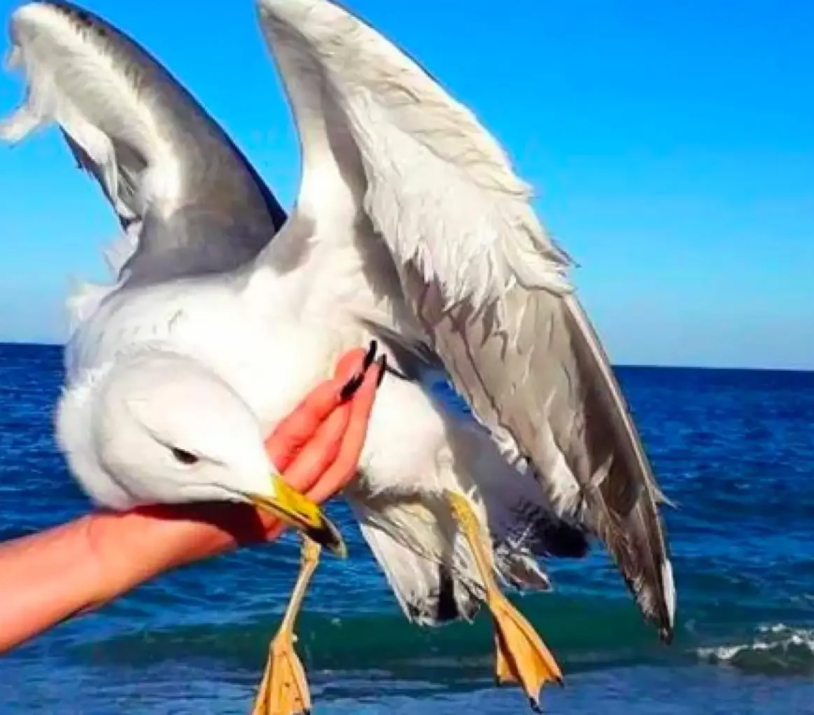 Στην παραπάνω εικόνα, φαίνεται ο τυχερός γλάρος που νίκησε τον θάνατο και μπόρεσε να ξανά πετάξει.