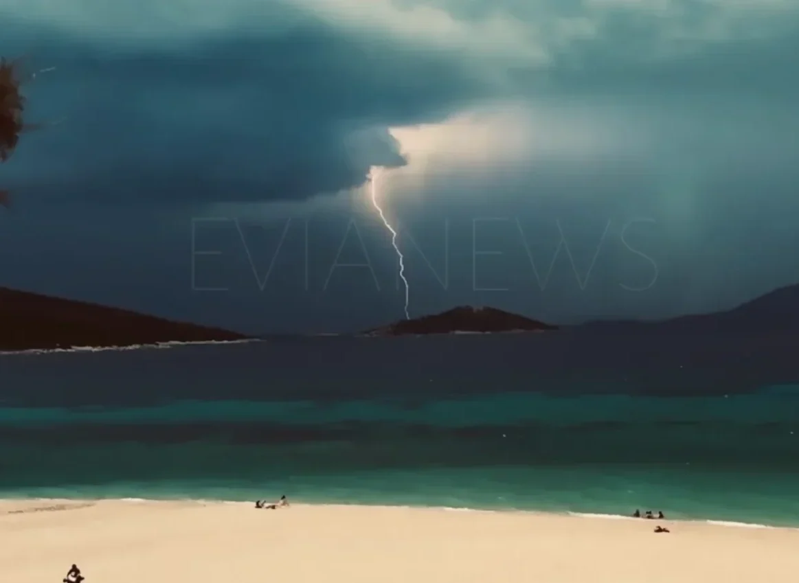 Μέσα σε λίγα λεπτά, ο καιρός έδειξε τα δόντια του. Βλέποντας αυτή την εικόνα, πολλοί που ήταν στην παραλία, βγήκαν στην ακτή.