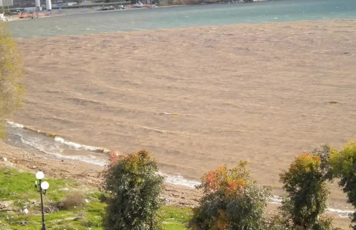 Ήταν μια παράξενη θάλασσα όπου ξαφνικά το γαλάζιο γέμισε από καφέ απόχρωση. Γέμισε από λάσπες. Η φωτογραφία που θα δείτε και εσείς είναι εντυπωσιακή.