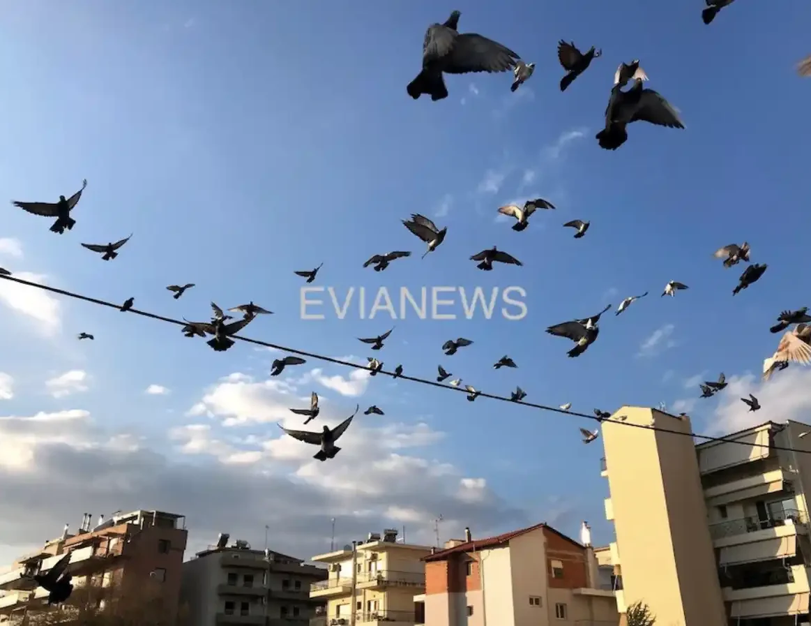 Ένα απίθανο θέαμα πάνω από τα κεφάλια αρκετών που έτυχε να περπατούν εκείνη την στιγμή στη Χαλκίδα.