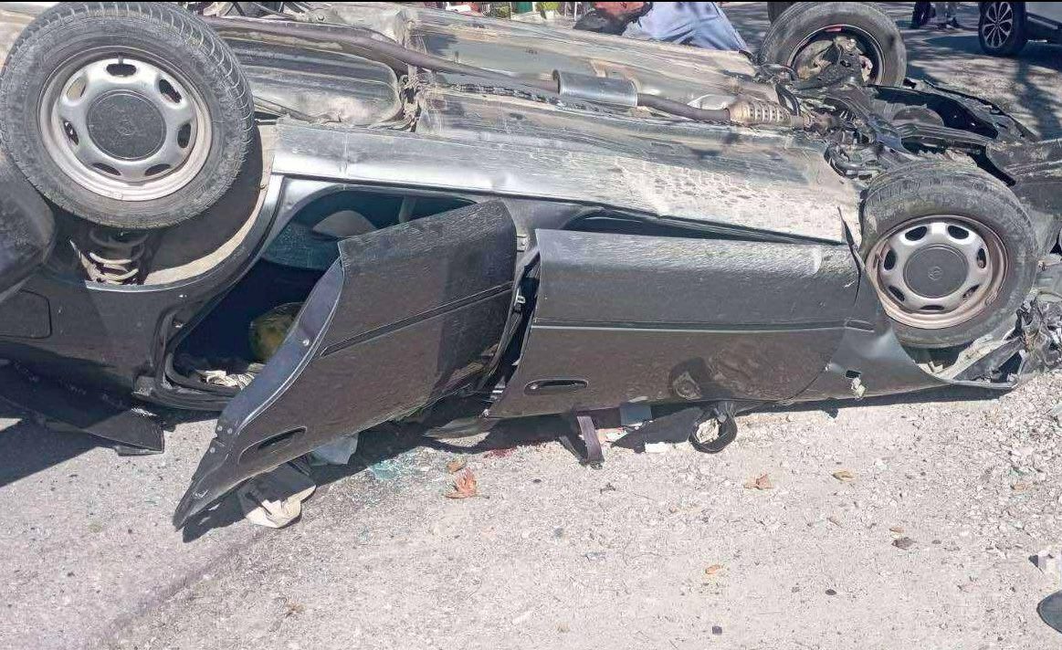 Η εικόνα από το σημείο είναι σοκαριστική, με το αυτοκίνητο αναποδογυρισμένο στην άκρη του δρόμου.