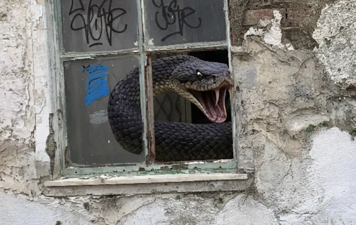 Ένα φίδι, τέρας, μακρύ και χοντρό σαν μπράτσο, ήταν κουλουριασμένο μπροστά στην πόρτα!