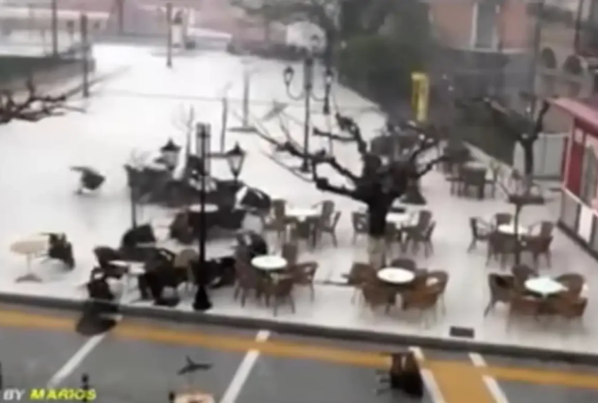 Ο καιρός στην Κύμη, σκοτείνιασε και ξαφνικά άρχισε να παίρνει τα τραπέζια και τις καρέκλες. Ένα απίθανο βίντεο το 2015 που έγινε viral, δείχνοντας την μανία της φύσης.